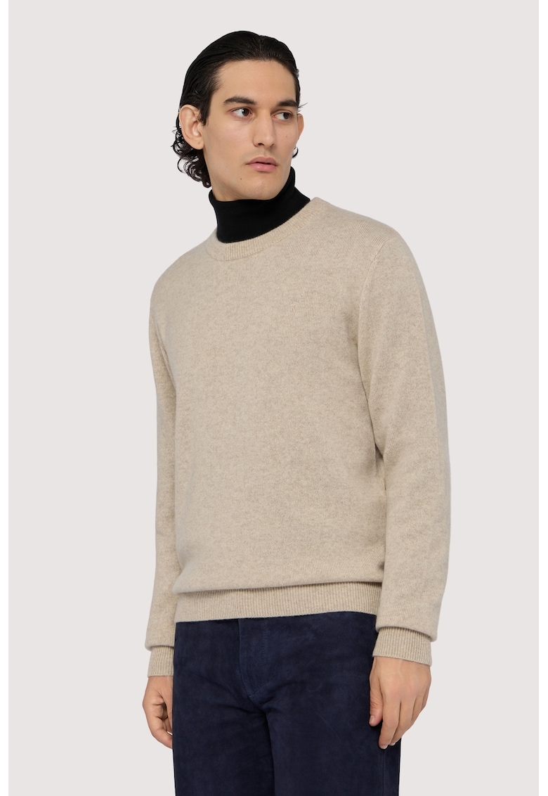 Характеристики Тип продукт: пуловер Цвят: бежов Принт: без принт Материал: кашмир Кройка: стандартна Закопчаване: без закопчаване Яка: овално деколте Дължина ръкав: дълъг ръкав Състав Външна част: 100% кашмир