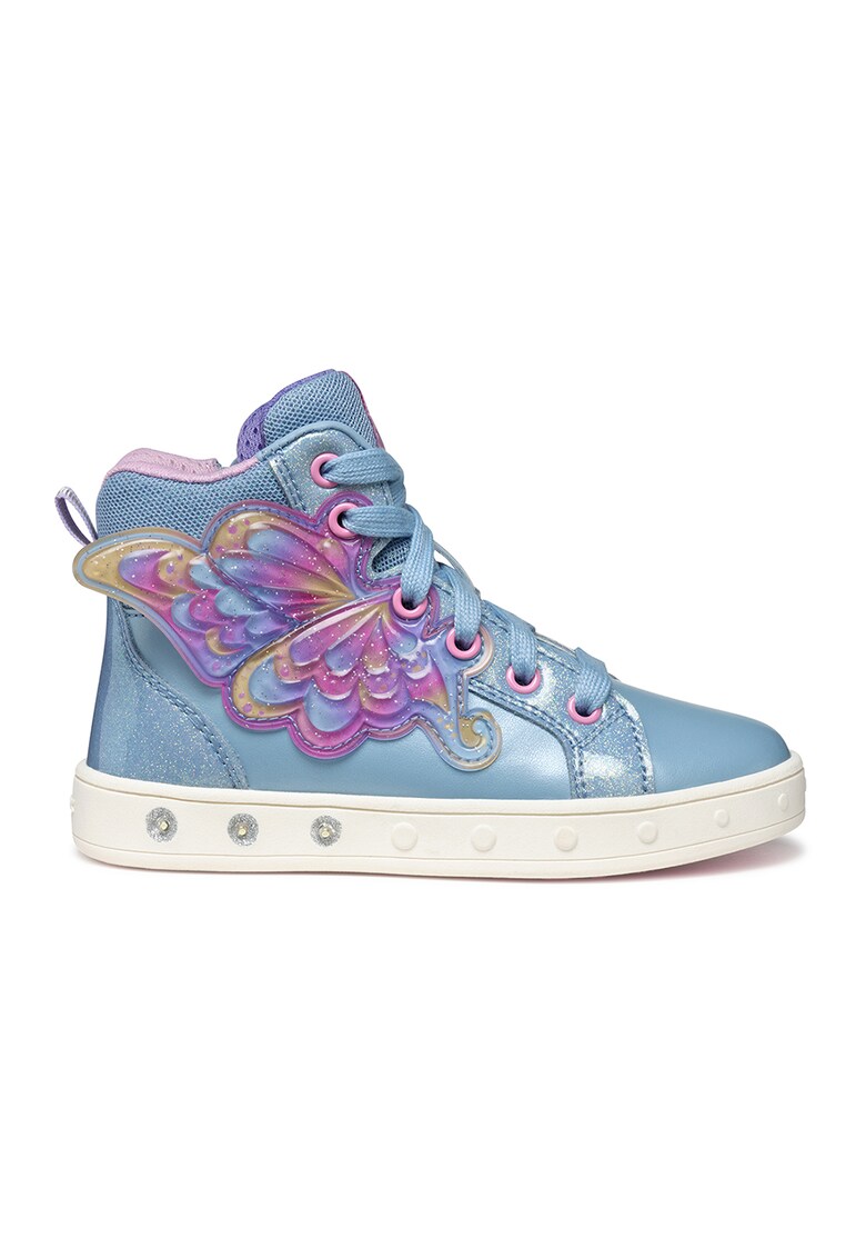 Характеристики Тип продукт: кецове Цвят: лавандула Стил: ежедневен Материал: текстил – екологична кожа Закопчаване: връзки – цип Тип на подметката: плоска Детайли: led светлина – апликации на пеперуди Технология: geox respira® Състав Горна част: други материали – текстил …