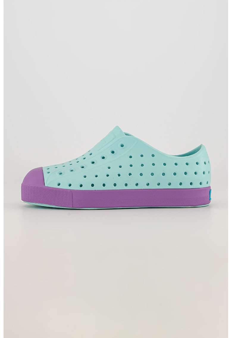 Характеристики Тип продукт: кецове Цвят: виолетов – тюркоаз Принт: без принт Стил: ежедневен Материал: синтетичен – eva Закопчаване: без закопчаване Тип на подметката: плоска Детайли: перфориран дизайн Състав Горна част: синтетика Материал интериор: синтетика Материал …