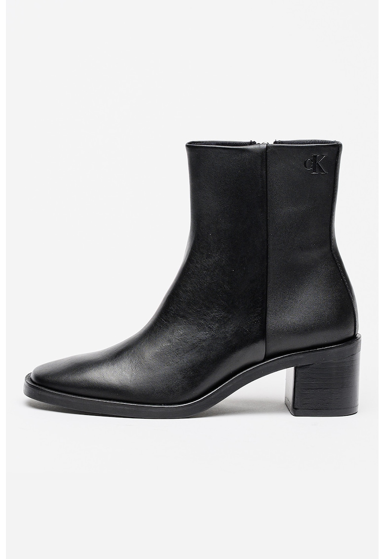 Оригинални Кожени боти с квадратен връх и масивен ток – Черен CALVIN KLEIN