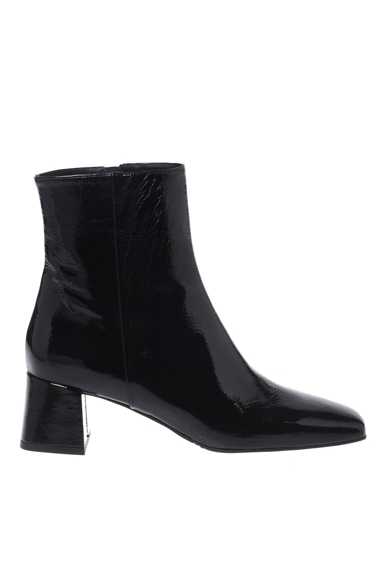 Характеристики Тип: с ток Цвят: черен Материал: eстествена кожа Стил: елегантен Връх: квадратен Тип на тока: масивен Закопчаване: цип Състав Горна част: кожа Материал интериор: кожа Материал подметка: други материали Размери Височина на tок: 5 cm