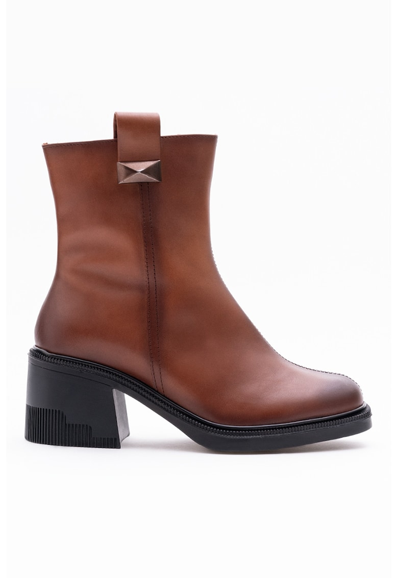 Характеристики Тип: с ток Цвят: коняк кафяв Материал: eстествена кожа Принт: без принт Стил: ежедневен Връх: кръгъл Тип на тока: кубински Цвят на метала: черен – бронз Закопчаване: цип Състав Горна част: кожа Материал интериор: вълна Материал подметка: други материали …