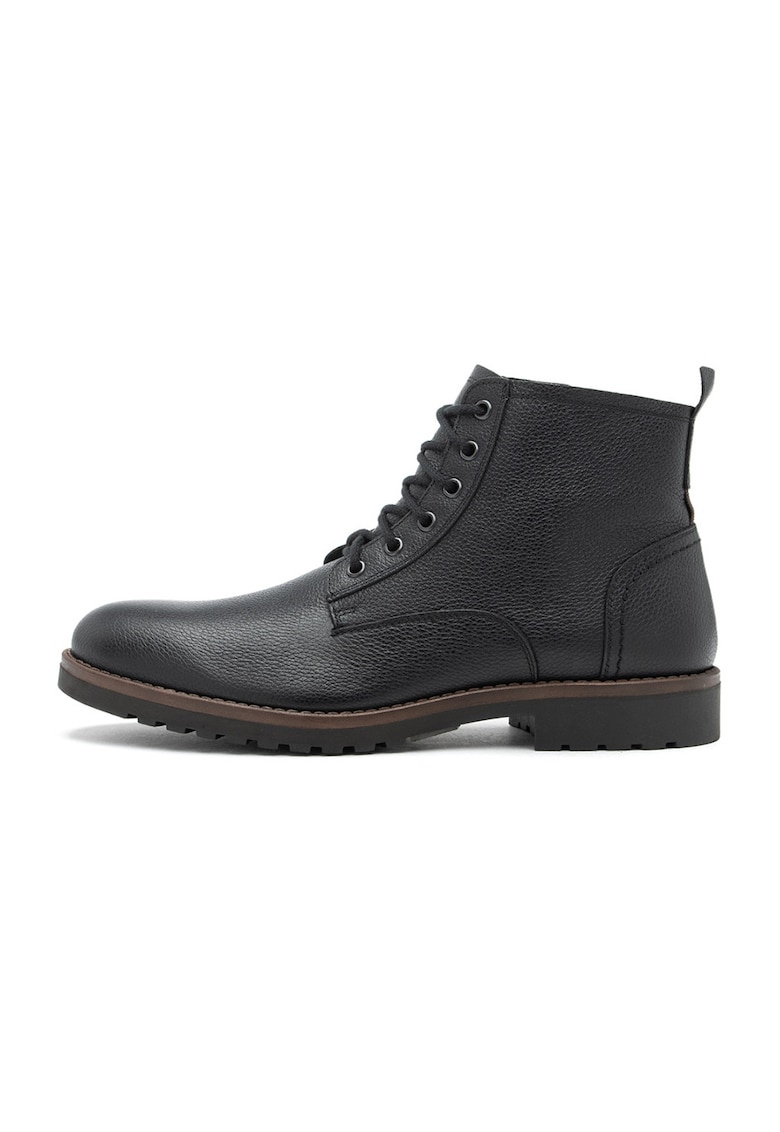Характеристики Тип: ботуши Цвят: черен – избеляло черно Материал: eстествена кожа Стил: ежедневен Връх: кръгъл Закопчаване: връзки – цип Състав Горна част: кожа Материал интериор: други материали Материал подметка: други материали