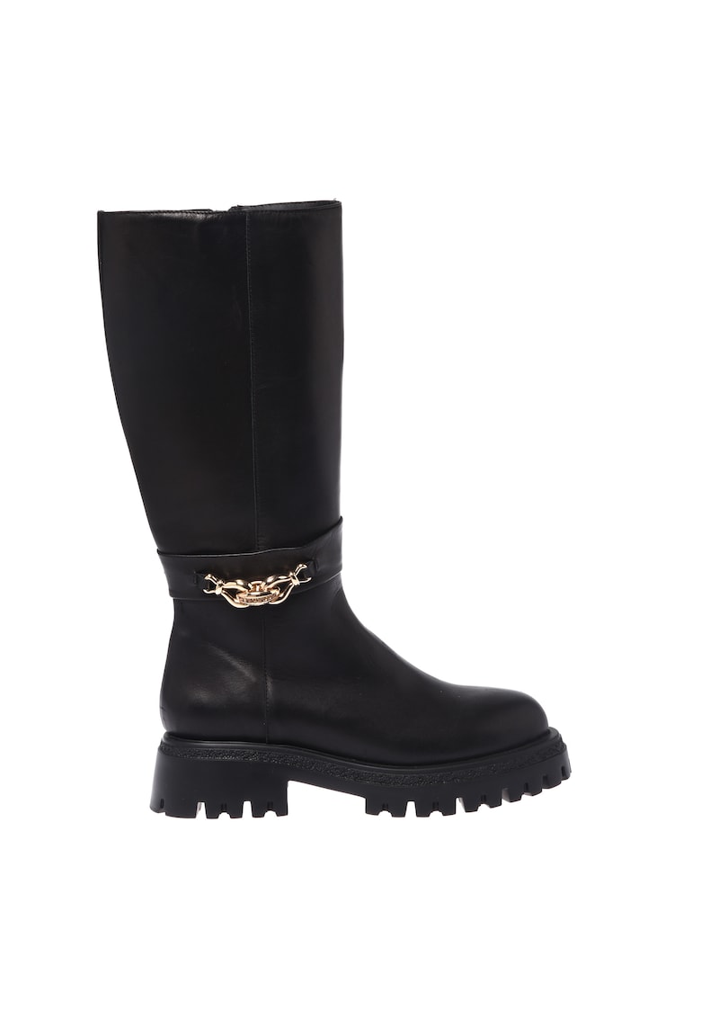 Кожени ботуши до коляното с декоративна каишка Baldinini