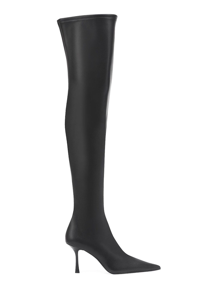 Характеристики Тип: с ток Цвят: черен Материал: екологична кожа Принт: без принт Стил: елегантен Връх: остър Тип на тока: стилето Височина: 45 cm Закопчаване: без закопчаване Състав Горна част: други материали Материал интериор: кожа Материал подметка: други материали …