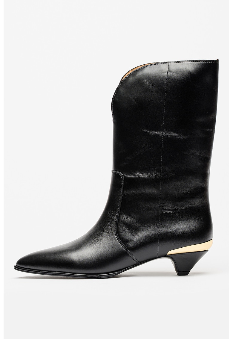 Характеристики Тип: с ток Цвят: черен Материал: eстествена кожа Принт: без принт Стил: ежедневен Връх: остър Тип на тока: котешки Детайли: елементи с метален ефект Цвят на метала: златист Закопчаване: без закопчаване Състав Горна част: кожа Материал интериор: кожа …