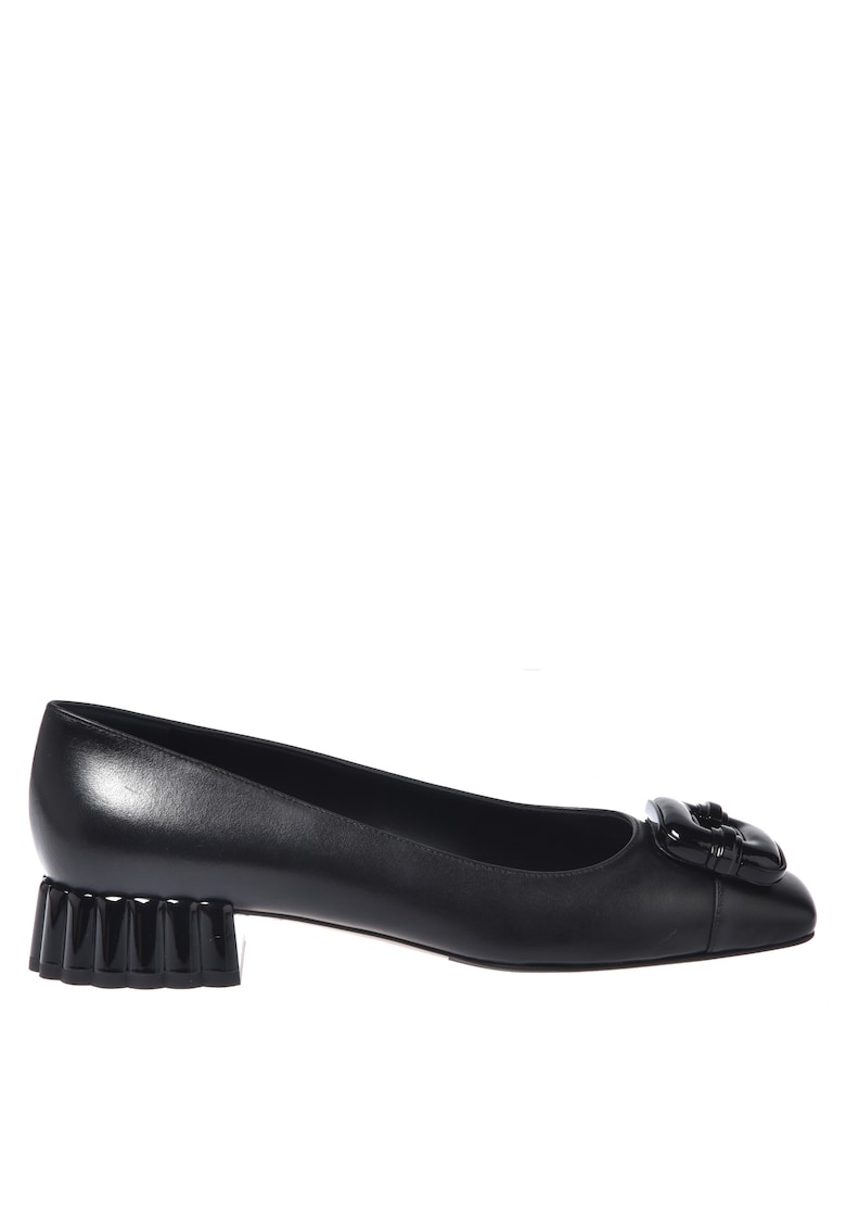 Кожени обувки с ток и метален детайл – Черен Baldinini