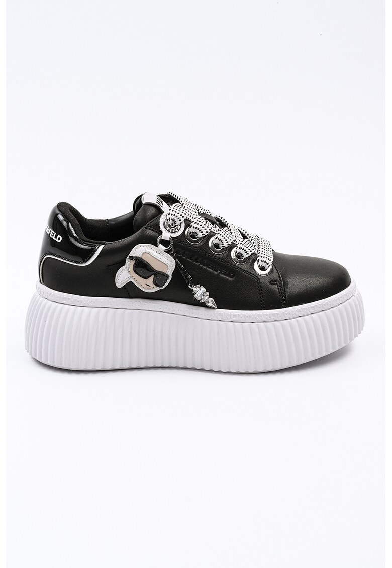Информация за Кожени спортни обувки с монограм и равна платформа – Бял/Черен Karl Lagerfeld: