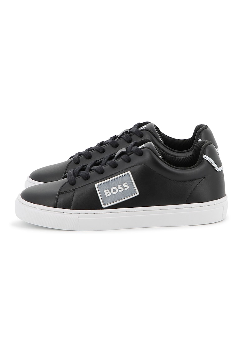 Информация за Кожени спортни обувки с пришито лого и равна подметка BOSS Kidswear: