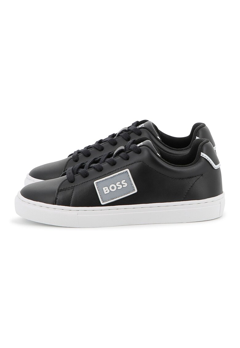 Информация за Кожени спортни обувки с пришито лого и равна подметка – Черен BOSS Kidswear:
