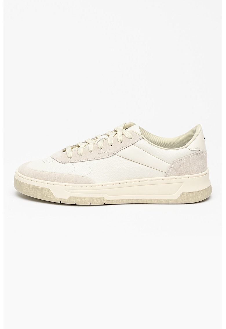Кожени спортни обувки Baltimore с велур – Бял/Сив BOSS