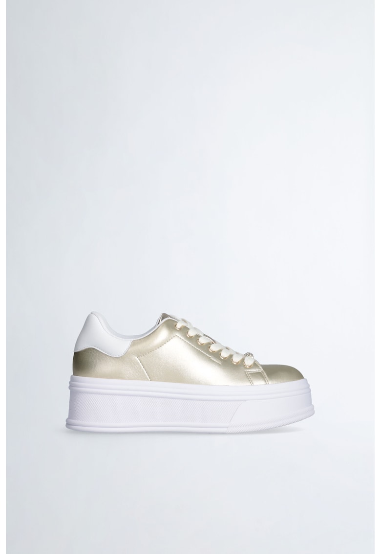 Характеристики Цвят: златист Връх: кръгъл Принт: лого Тип на подметката: равна платформа Материал: eстествена кожа Стил: ежедневен Закопчаване: връзки Състав Горна част: кожа Материал интериор: текстил Материал подметка: други материали Размери Височина на …
