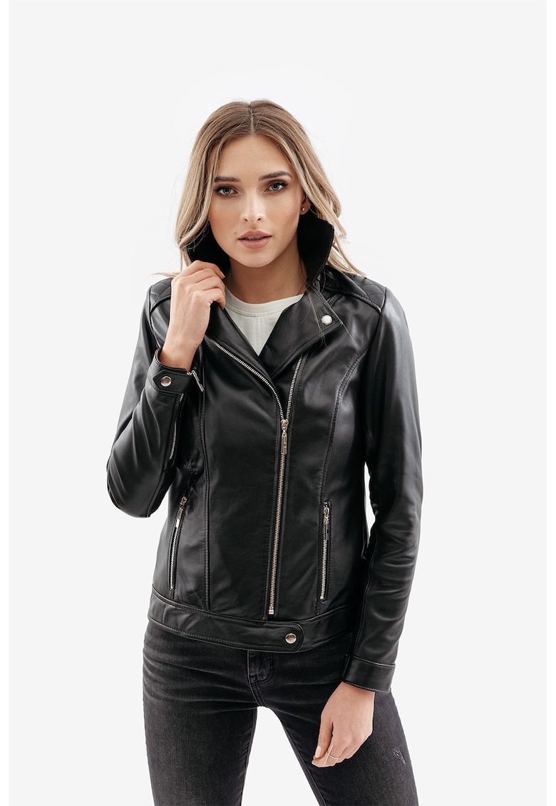 Кожено яке Biker с асиметрично закопчаване – Черен Gerali