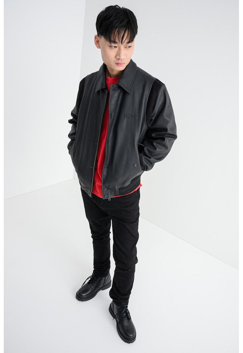- Качество и издръжливост – Кожено яке Lewick с велур – Черен HUGO – изработени от висококачествени материали, които осигуряват комфорт и дълготрайност.