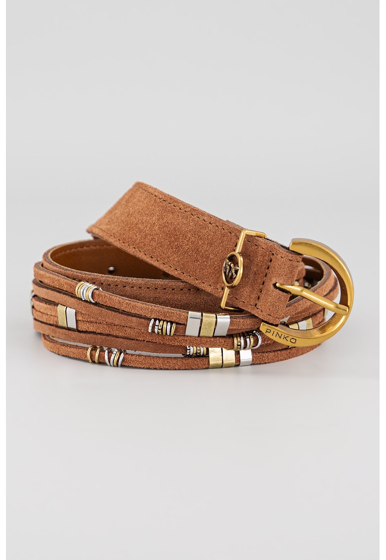 Кожен колан с метална тока – Коняк кафяв Pinko