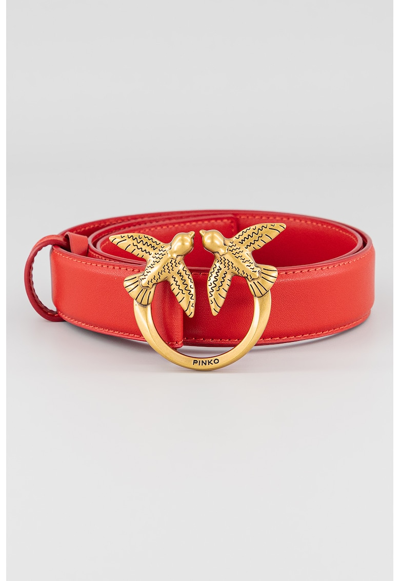 Една от най-новите тенденции в категория Колани. Добавете към своя стил с нашата изискана колекция от Колани на Pinko. Ние разполагаме с перфектните артикули, които да допълнят всяко облекло и да направят трайно впечатление. Нашата внимателно подбрана селекция модни аксесоари включва най-добрите марки и изключителни дизайни, гарантиращи изключително качество. Характеристики Цвят: аленочервен Материал: eстествена кожа Принт: без принт Стил: широк Тока: метална – лого Цвят на метала: златист Закопчаване: нит Състав Външна част: 100% кожа Размери Ширина: 3 cm от Pinko ще добави нотка елегантност, подчертаващ Вашият стил. Нашите модни аксесоари ще превърнат външния ви вид от обикновен в необикновен. Пазарувайте сега и разгърнете своята креативност с нашата широка гама от Колани.