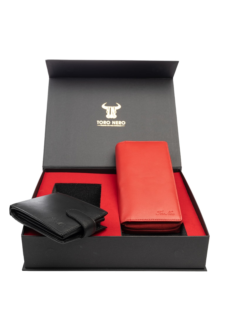 Комплект дамски портфейл и мъжки портфейл – естествена кожа – червен – Gina-Viki Toro Nero