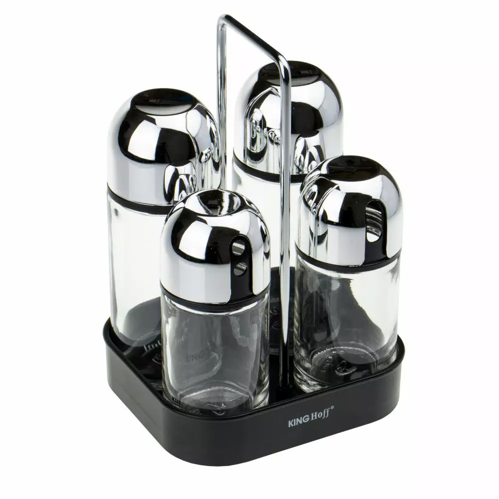 Комплект за дресинг Kinghoff KH 1647, Оливерник, Солница и пиперка, Стъкло, Стойка, Черен на най-добра цена.