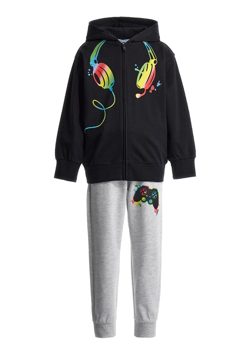 Характеристики Съдържание пакет: суитшърт с качулка и спортен панталон Цвят: черен – светло сив Стил: ежедневен Принт: графичен Кройка: стандартна Материал: синтетичен – памук Закопчаване: цип Дължина ръкав: дълъг ръкав Дължина панталон: дълъг Колекция: пролет – лято …