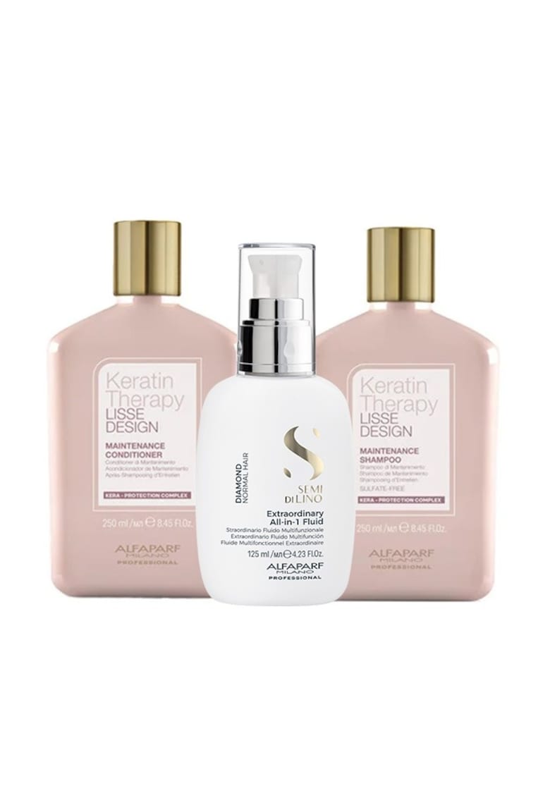 Комплект с Lisse Design Keratin Therapy Maintenance Shampoo 250 ml и балсам 200 ml и All-in-1 Diamond Illuminating Shine Fluid – 125 ml Alfaparf