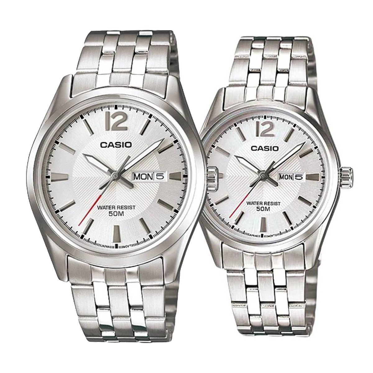 Романтични и стилни часовници за двойки – добре дошли в нашия онлайн магазин! Предлагаме уникални и специално подбрани модели, които съчетават красота, елегантност и символика, идеални за влюбени двойки. Комплект часовници за двойки Casio MTP-1335D-7AV-LTP-1335D-7AV, ще отразят вашата обща история и ще станат символ на вашата връзка. От класически до модерни дизайни, с разнообразие от материали и цветове, за да намерите този един специален аксесоар на Casio, който ще украси вашите китки и ще запази спомена за незабравимите моменти. Ние ви предлагаме удобен и сигурен начин за пазаруване, с качествени продукти от Casio, които гарантират вашата удовлетвореност и доверие. Купете Комплект часовници за двойки Casio MTP-1335D-7AV-LTP-1335D-7AV сега и подчертайте вашата любов с нашите часовници за двойки.