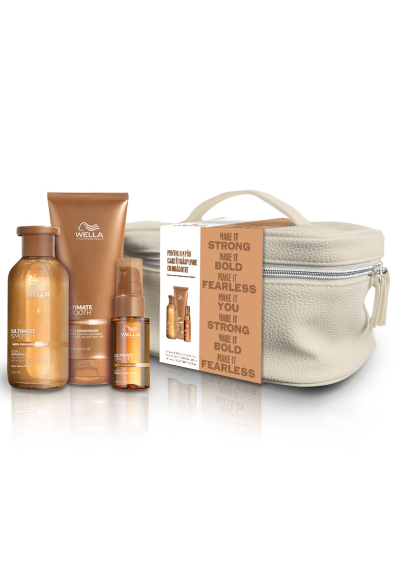 Относно Комплект Ultimate Smooth за суха и без блясък коса с анти-фриз ефект – Шампоан 250 мл – Балсам 200 мл – Серум масло за коса 30 мл на Wella Professionals