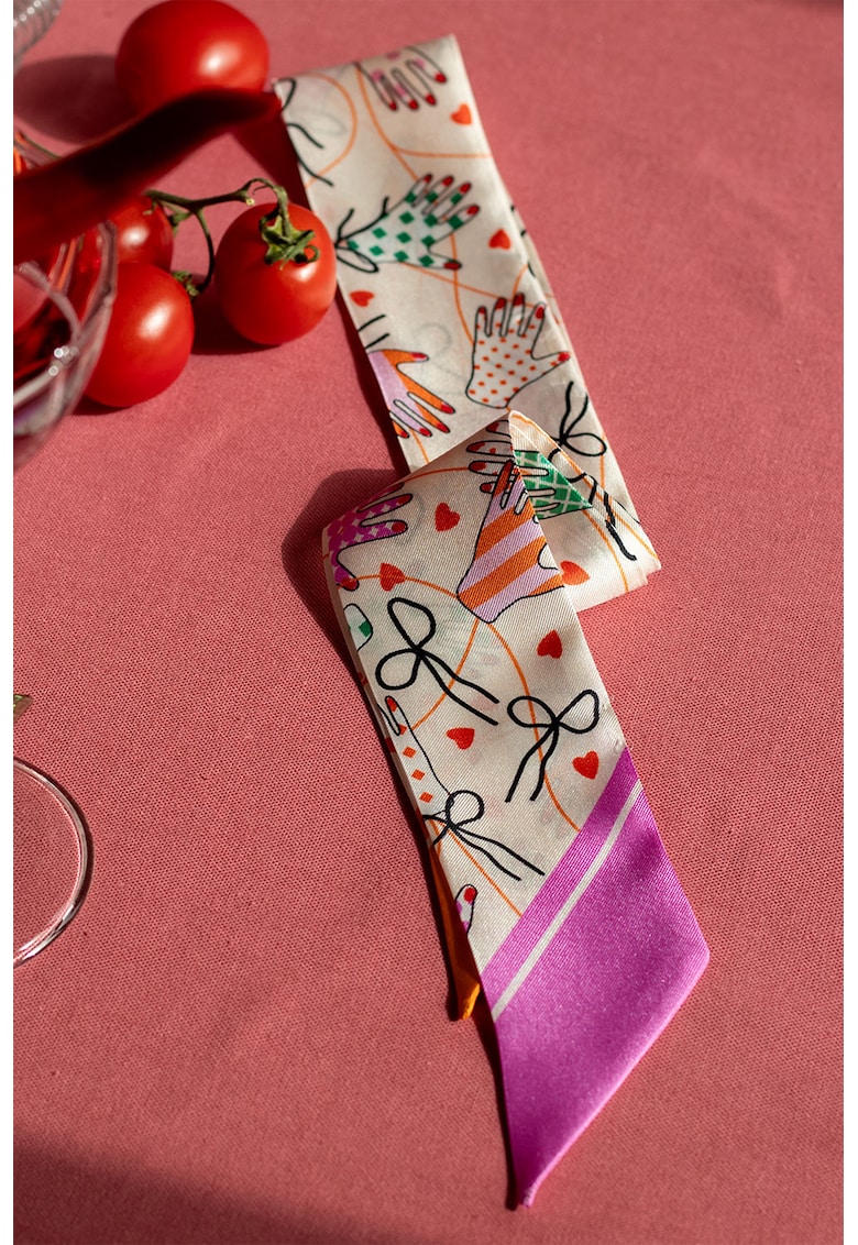 Характеристики Тип продукт: тънък шал Цвят: многоцветен Стил: ежедневен Сезон: пролет-лято – есен-зима Принт: графичен Материал: коприна Състав Външна част: 100% коприна Размери Размери (см): 100×5