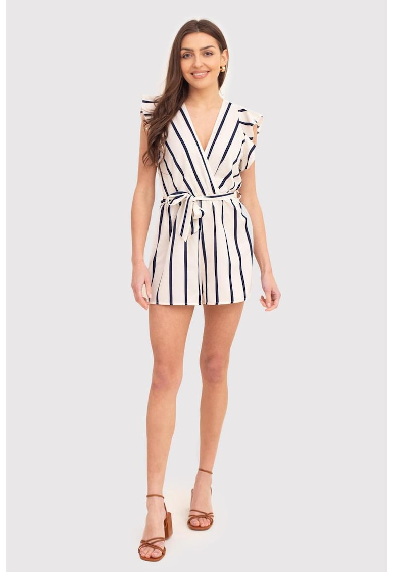 - Качество и издръжливост – Кремав къс гащеризон с тъмносини райета PA618 – Бял Ax Paris – изработени от висококачествени материали, които осигуряват комфорт и дълготрайност.