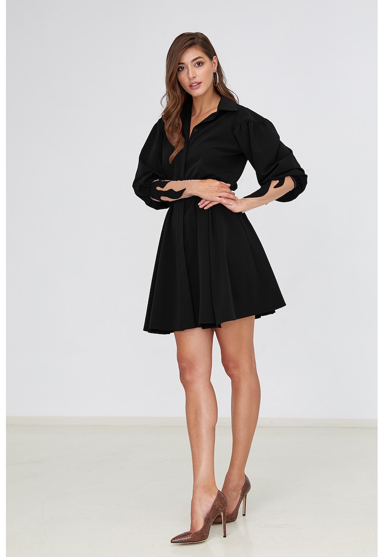 Къса разкроена рокля с бухнали ръкави – Черен Alina Cernatescu