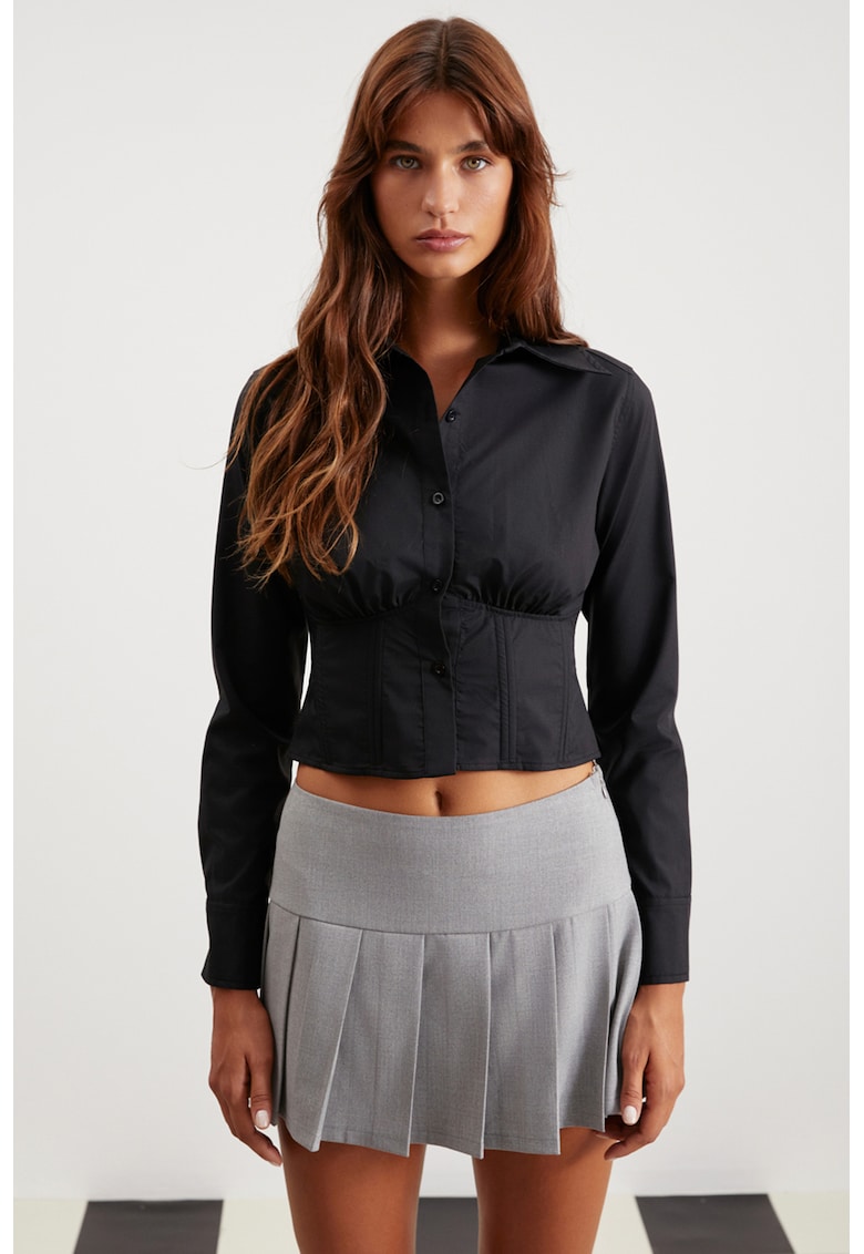 Характеристики Цвят: черен Принт: без принт Стил: ежедневен Материал: органичен памук Кройка: над глезена Яка: заострена Дължина ръкав: дълъг ръкав Закопчаване: копчета Състав Външна част: 100% органичен памук