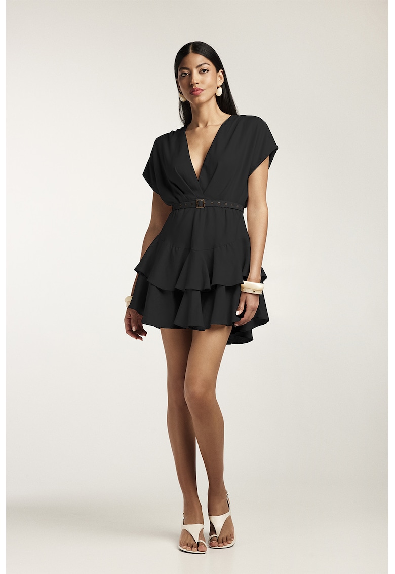Къса рокля с бамбукови нишки с колан и набиране Alina Cernatescu