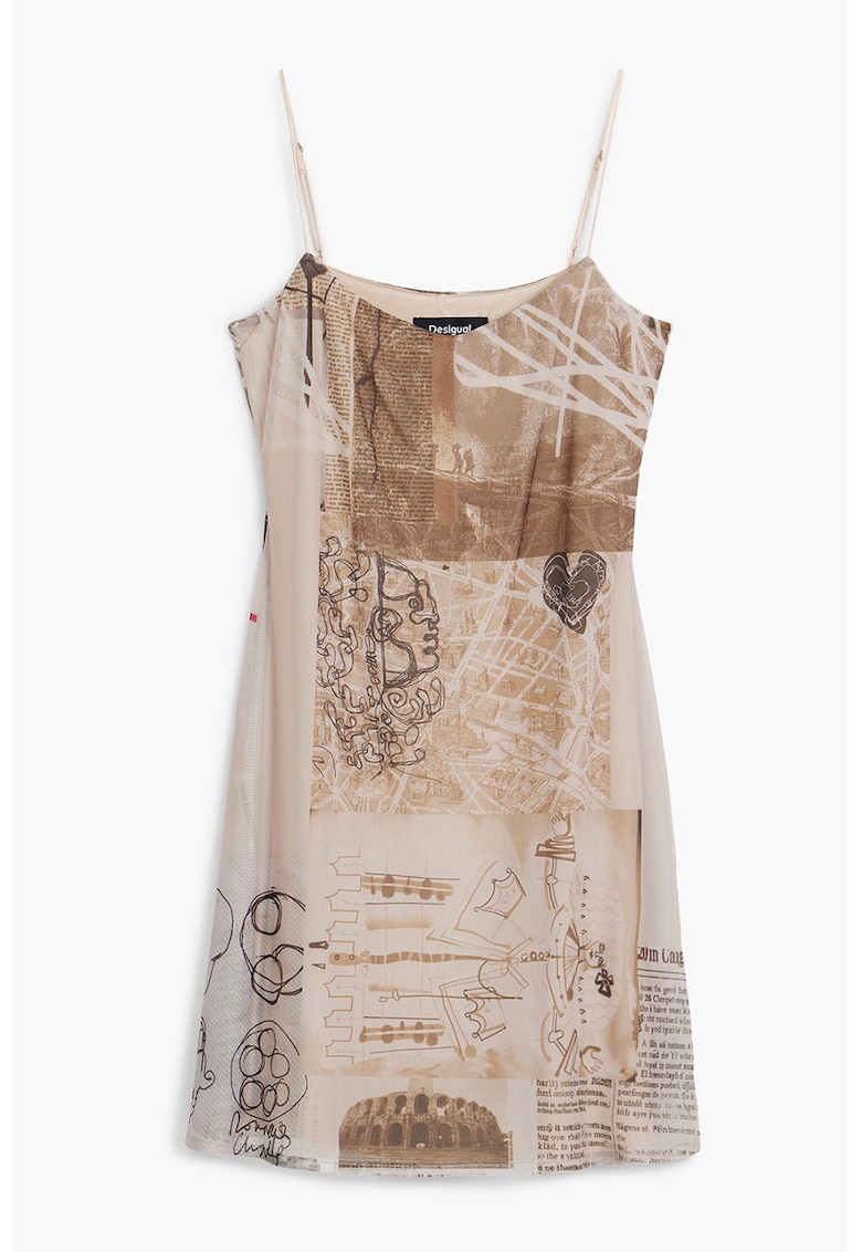 Къса рокля с десен и тънки презрамки – Черен/Бежов DESIGUAL