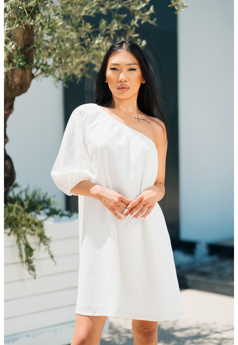 Къса рокля с едно рамо Бяла 17675 uFIT