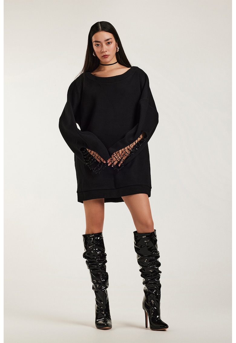 Къса рокля Rosario тип суитшърт – Черен Alina Cernatescu