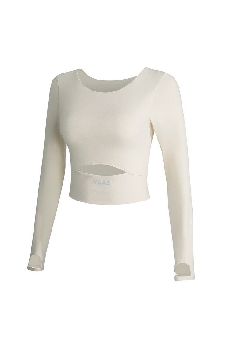 Относно Къса фитнес блуза Revelation с отвор отпред – Бял YEAZ