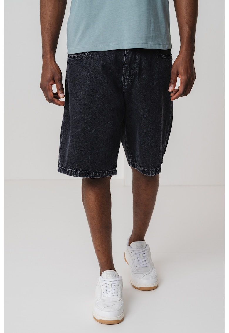 Характеристики Цвят: избеляло черно Материал: дънков плат Принт: без принт Кройка: стандартна Талия: средновисока Дължина: къси Джобове: 5 броя Състав Външна част: 100% памук Информация за модел Моделът е облечен с размер 32. Размер на модела: 184 cm височина – 95 cm Гръдна …