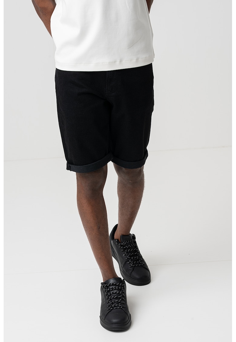 Характеристики Материал: дънков плат Принт: без принт Кройка: стандартна Талия: средновисока Дължина: къси Джобове: 5 броя Детайли: bci-better cotton initiative™ Закопчаване: цип Състав Външна част: 94% памук – 4% еластомултиестер – 2% еластан Информация за модел Моделът е облечен с …