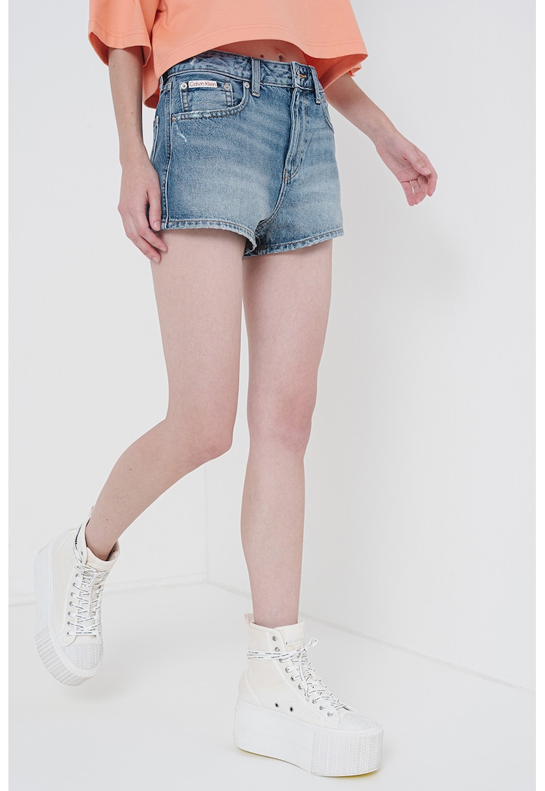 Къси дънки с миди талия – Син меланж CALVIN KLEIN JEANS
