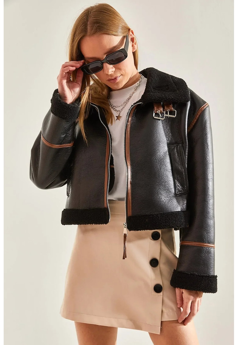 Късо дамско яке – екологична кожа – черно HiCCUP