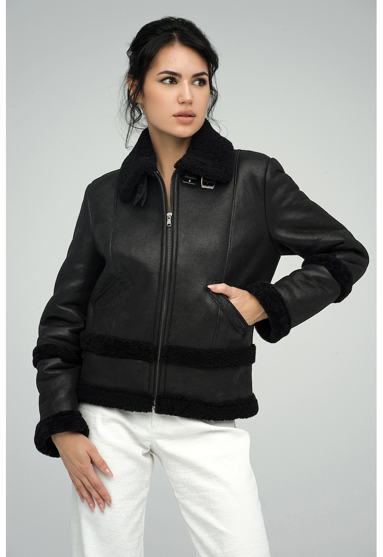 Относно Късо зимно кожено яке – Черен AA Vesa
