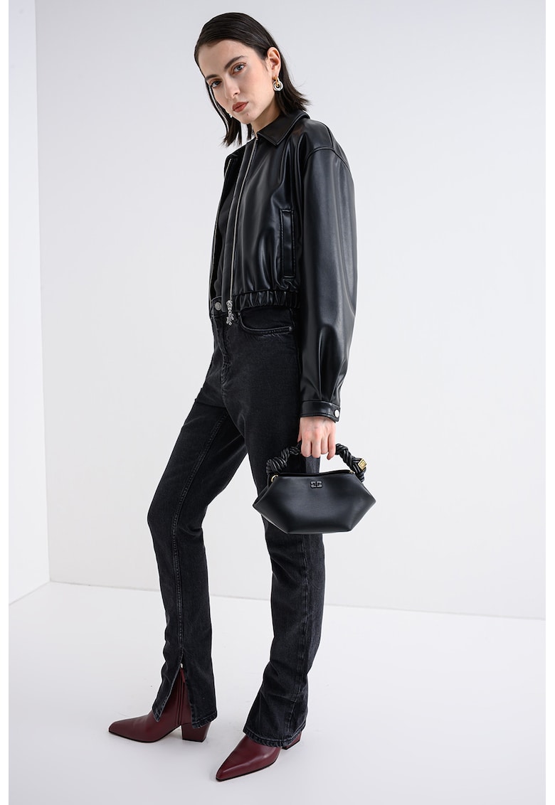 Късо яке от еко кожа с паднали ръкави – Черен HUGO