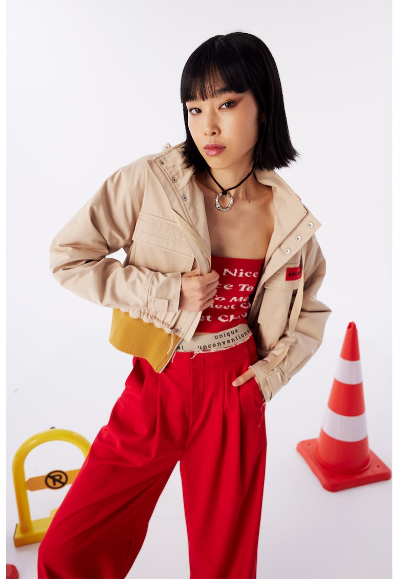 Късо яке с еластична рипсена талия – Жълт/Бежов TWIST