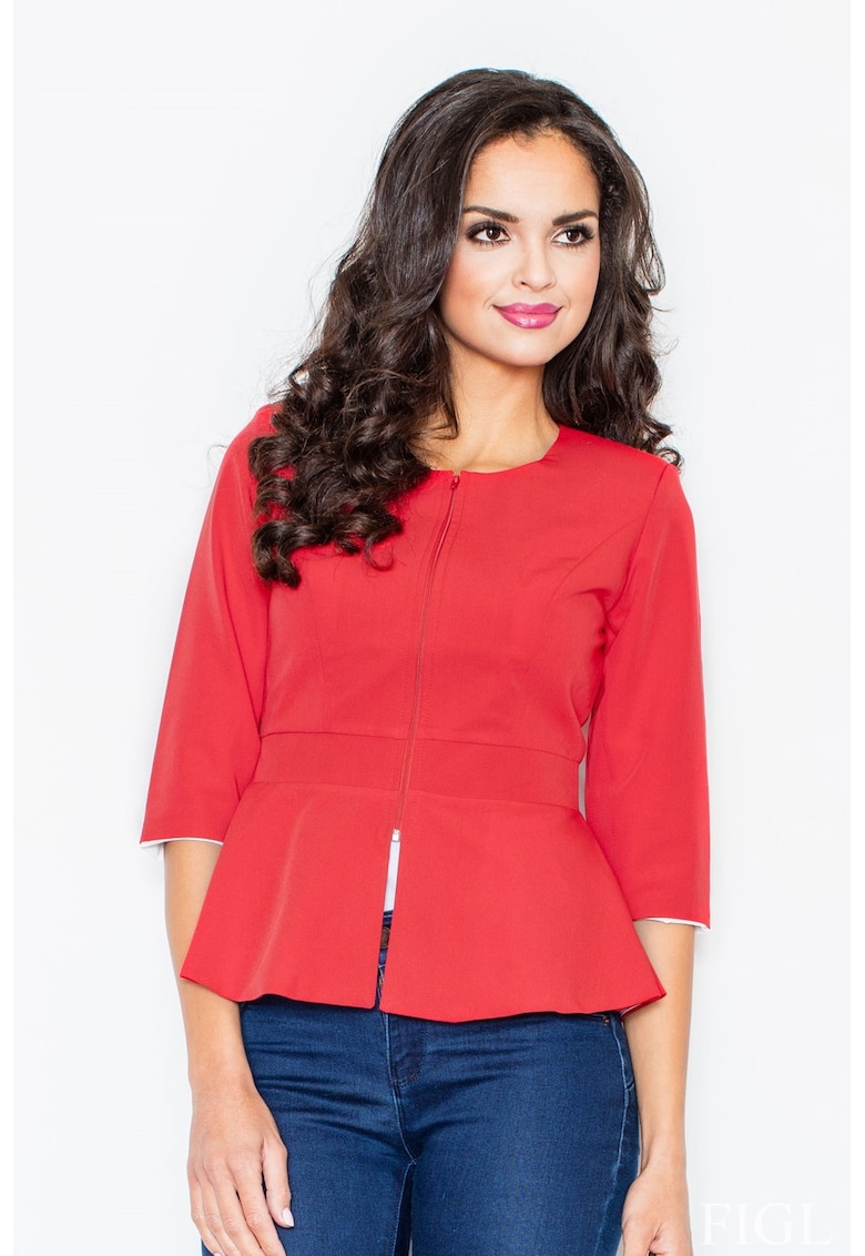 Късо яке червено – с цип – за жени – полиестер – Figl
