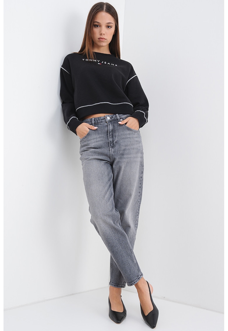 Къс свободен суитшърт – Бял/Черен Tommy Jeans