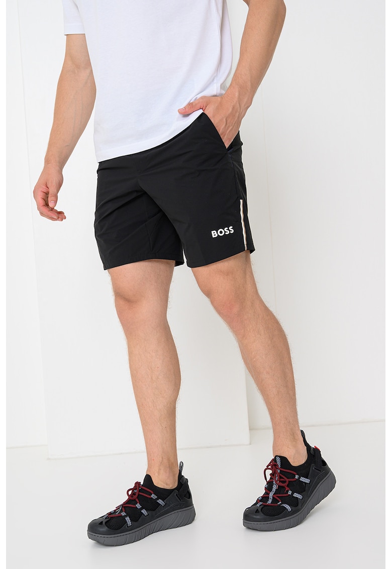 Къс спортен панталон с еластична талия – Бял/Черен/Сиво-бежов BOSS