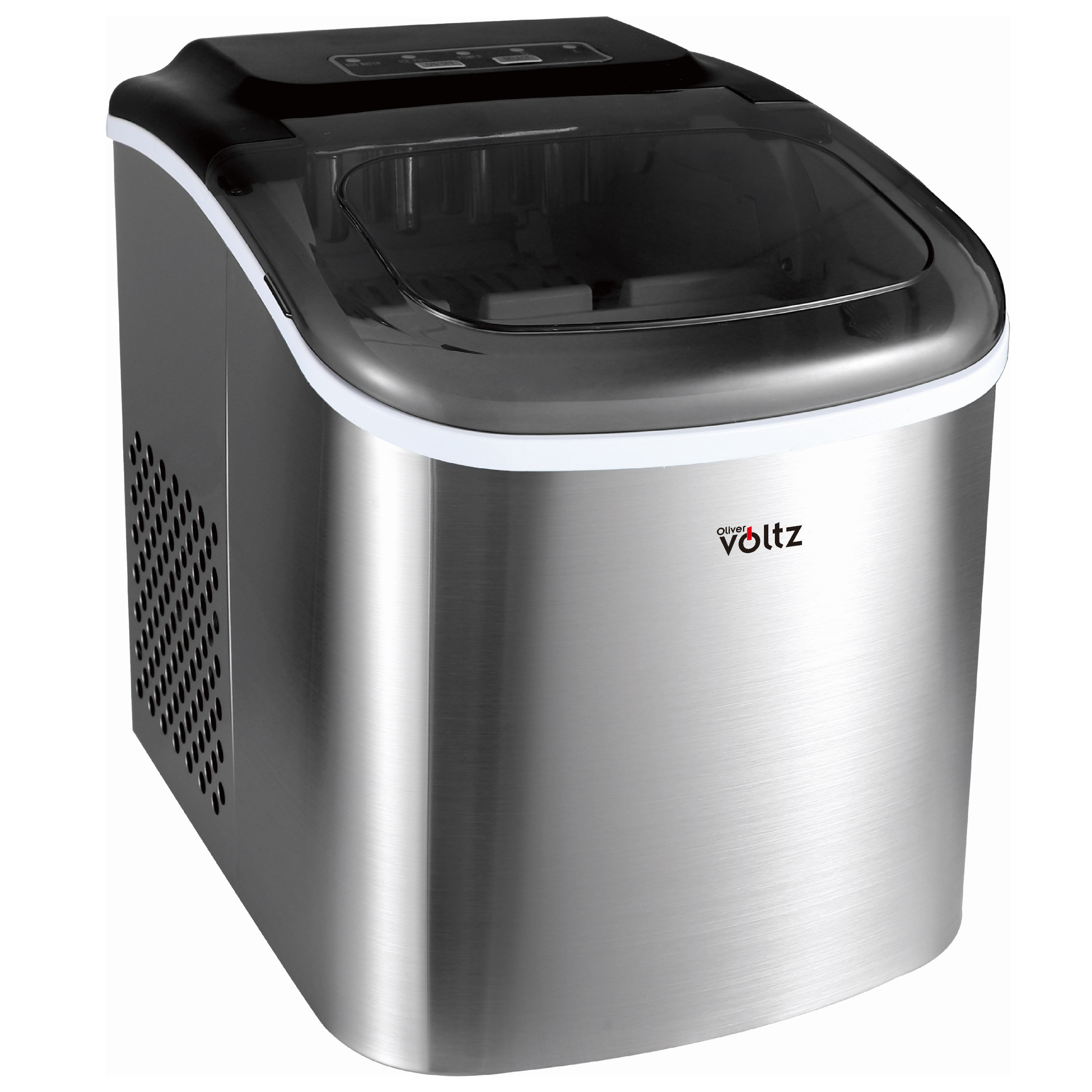 Ледогенератор Oliver Voltz OV51447CS, 120W, 12кг/24 часа, 1.3 л, 9 кубчета за цикъл работа, Индикатор за лед и вода, Инокс на най-добра цена.