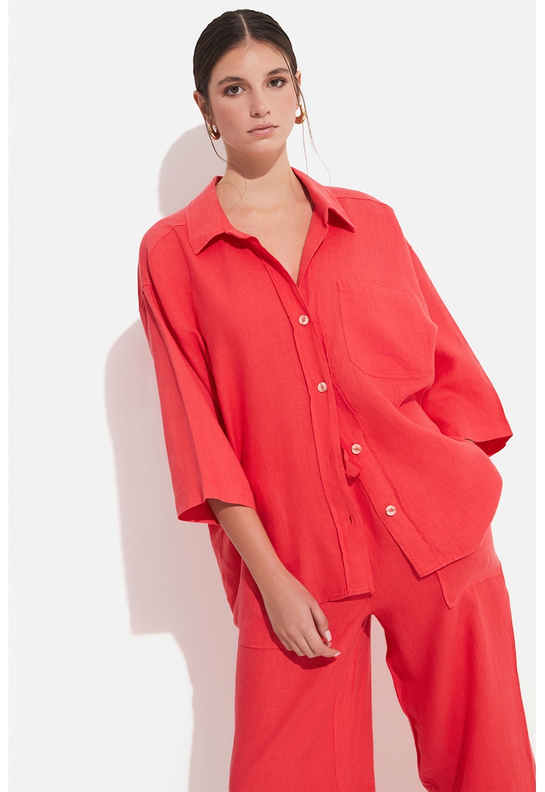 Относно Ленена риза с 3/4 ръкави – Червен June