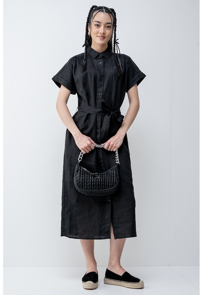 Ленена рокля-риза с къси ръкави – Черен Tommy Hilfiger