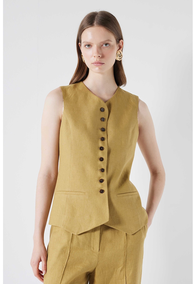 Ленено сако с копчета – без ръкави – Синапено жълто Ipekyol