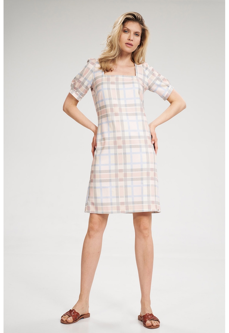 Лятна рокля M704 – Полиестер – Квадратно деколте – Къс ръкав – Екрю/Многоцветен Figl